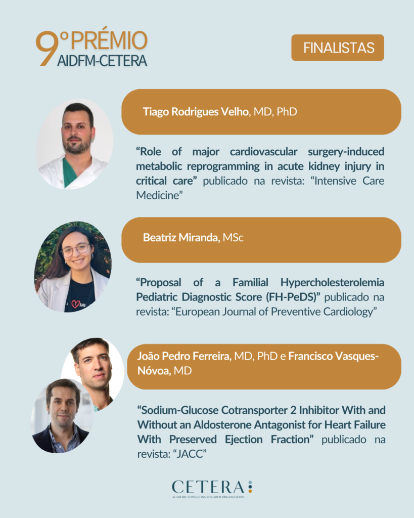 The Top finalists of the 9th Edition of the AIDFM-CETERA Award for the best scientific article of 2025 in the cardiovascular field are:
